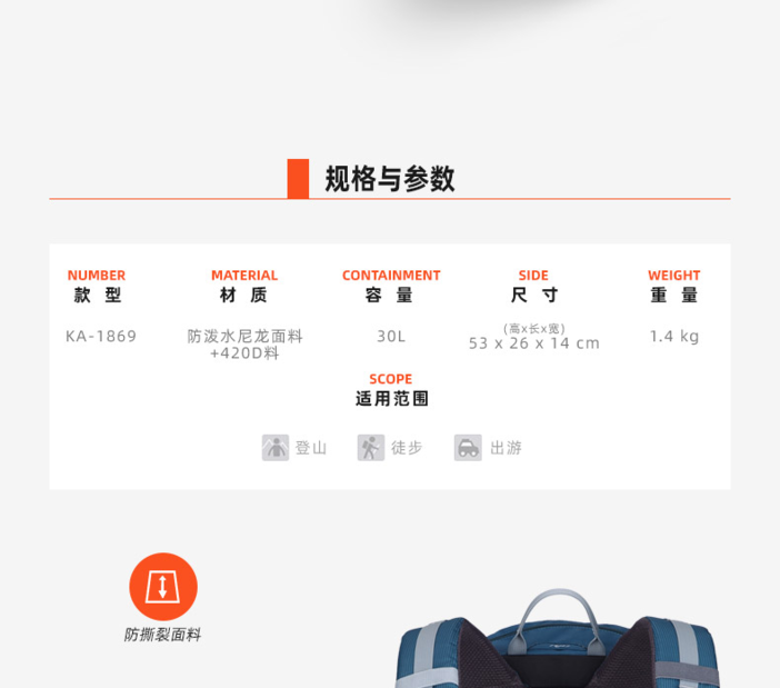 【限时大促】AIONE艾王0.85KG钢丝悬浮透气背负款轻量化徒步30L登山背包1869A