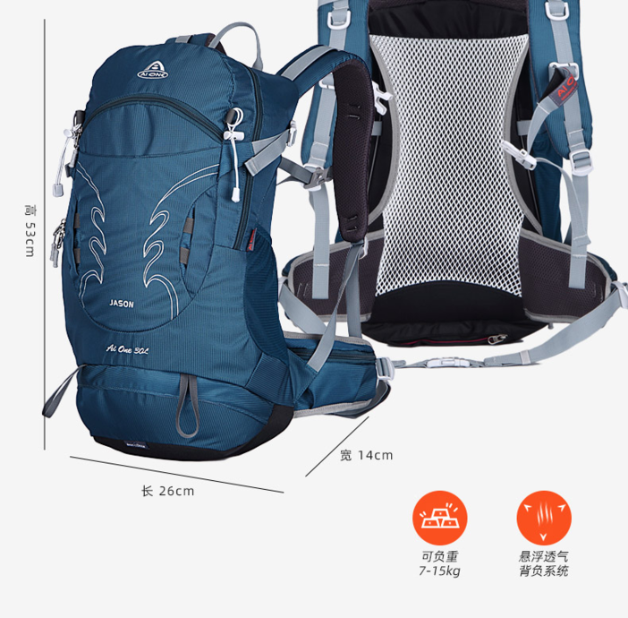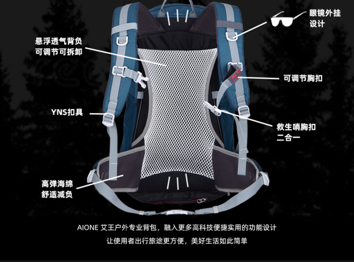 AI ONE艾王 30L透气背负舒适大容量合理装载户外背包