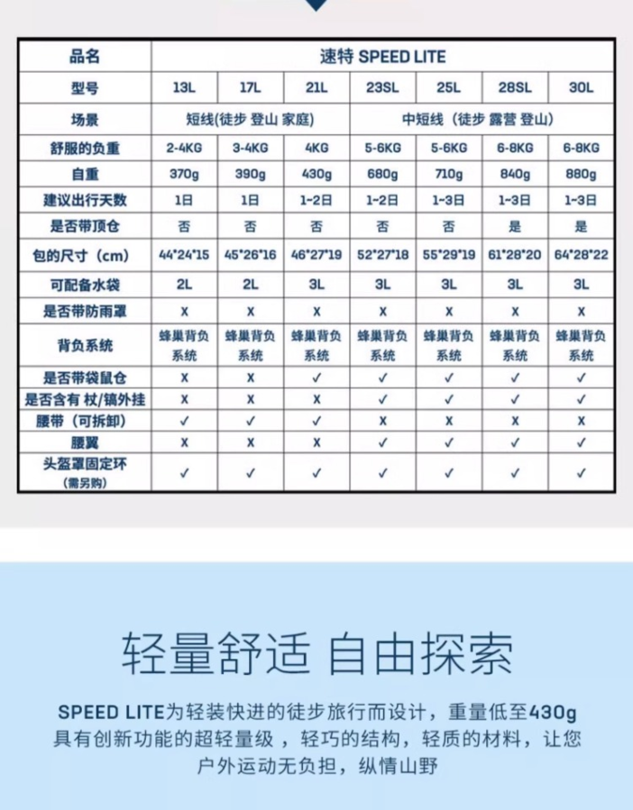 【限时大促】AIONE艾王0.85KG钢丝悬浮透气背负款轻量化徒步30L登山背包1869A