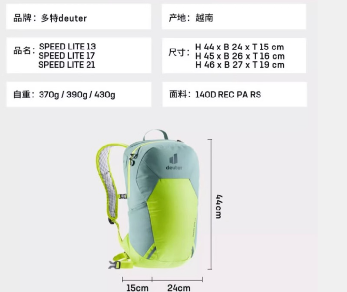 德国多特deuter速特13L17L23升超轻量双肩包户外徒步男女款登山包双肩包背包徒步包