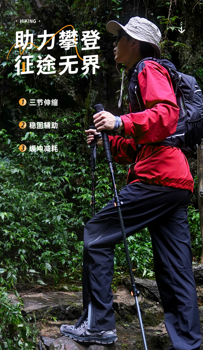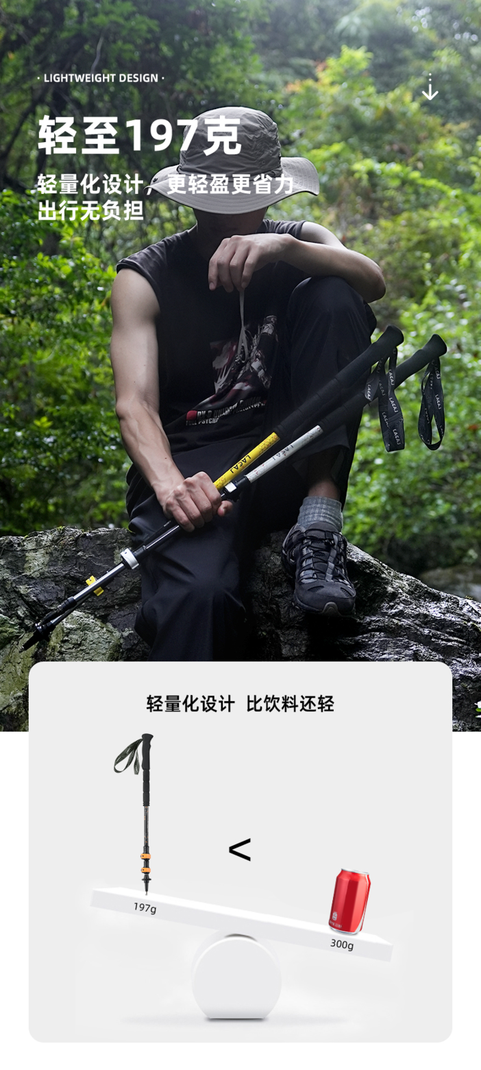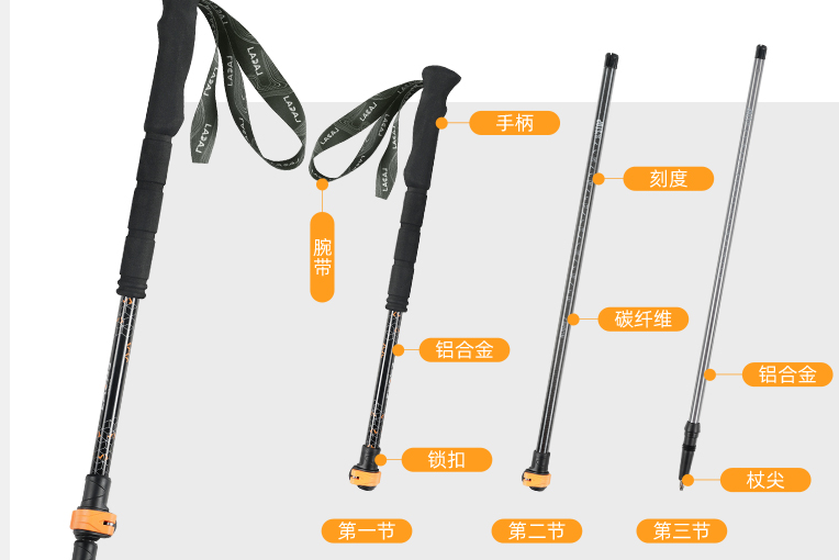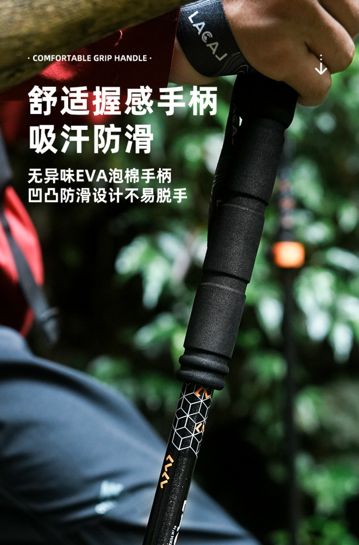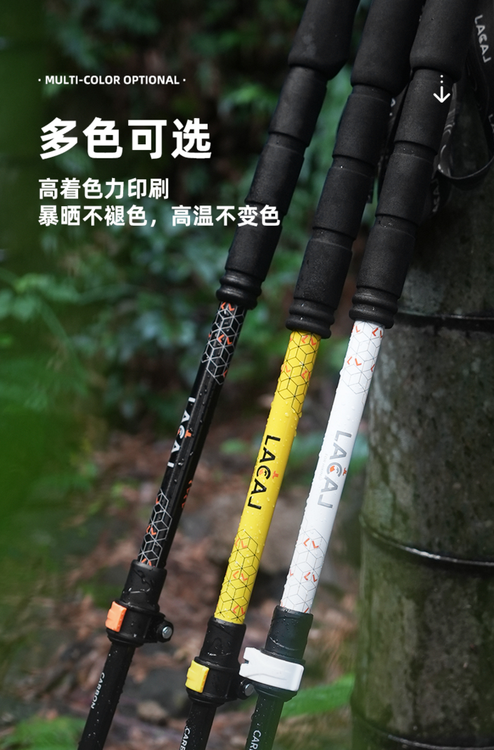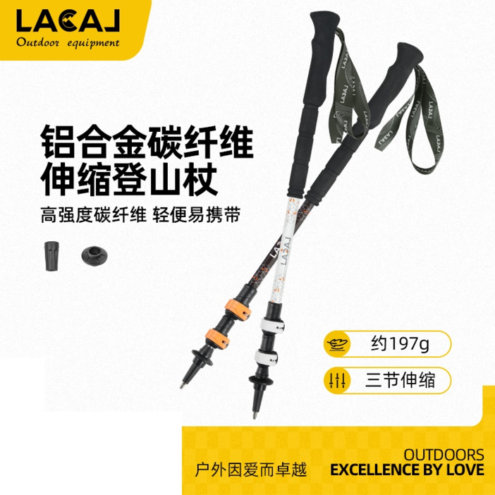 LACAL登山杖碳素纤维铝合金超轻伸缩手杖多功能外锁扣徒步棍德国登山杖