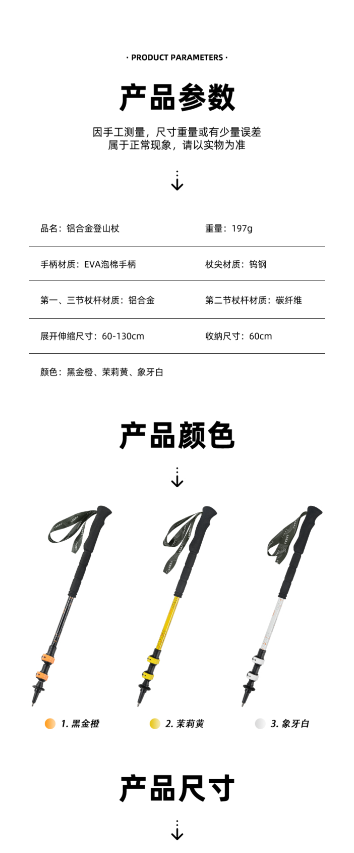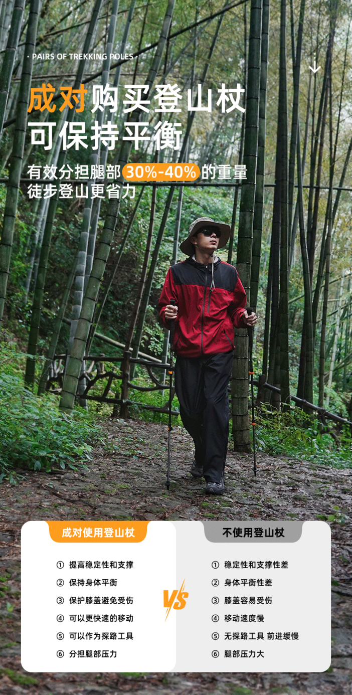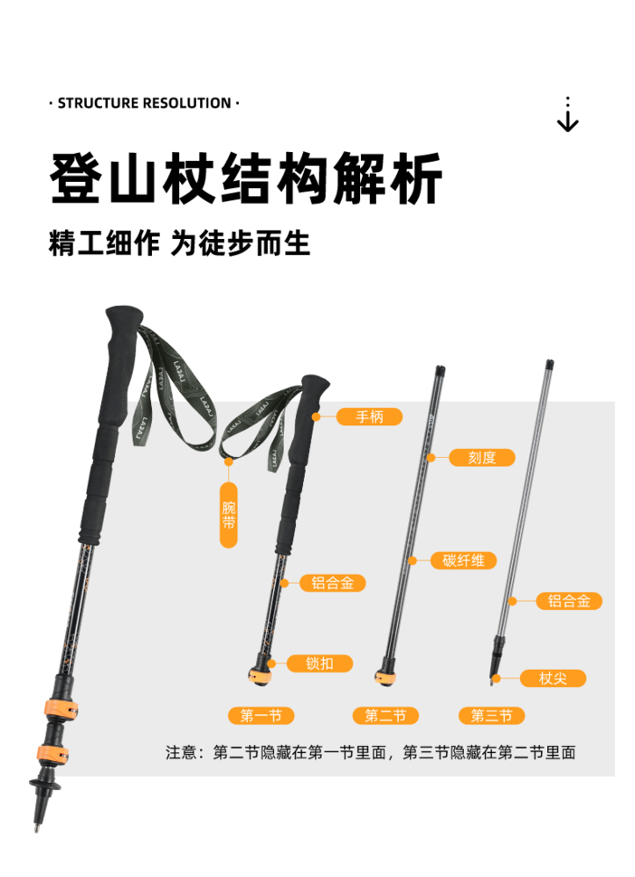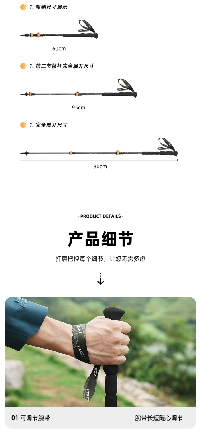 LACAL登山杖碳素纤维铝合金超轻伸缩手杖多功能外锁扣徒步棍德国登山杖