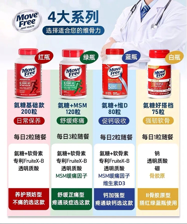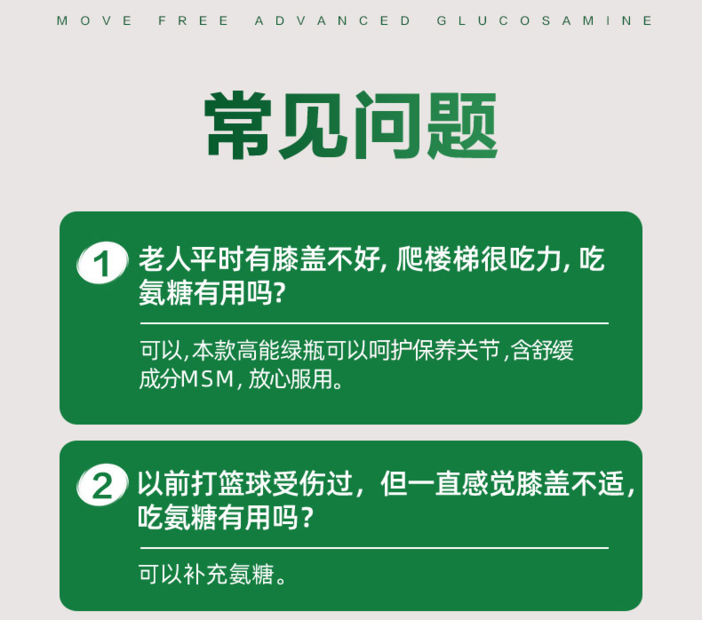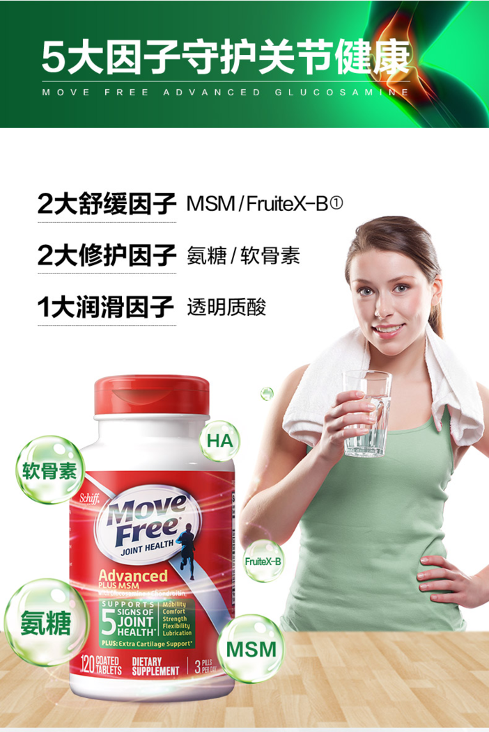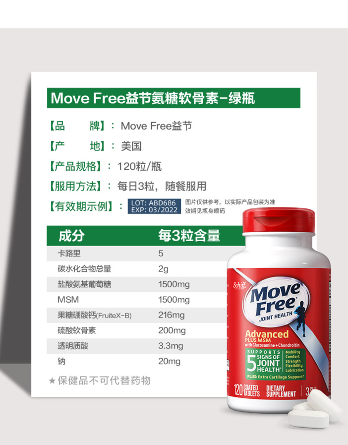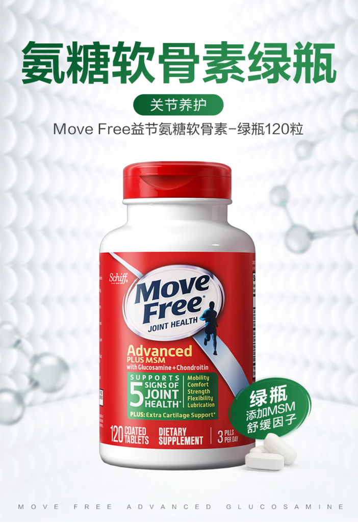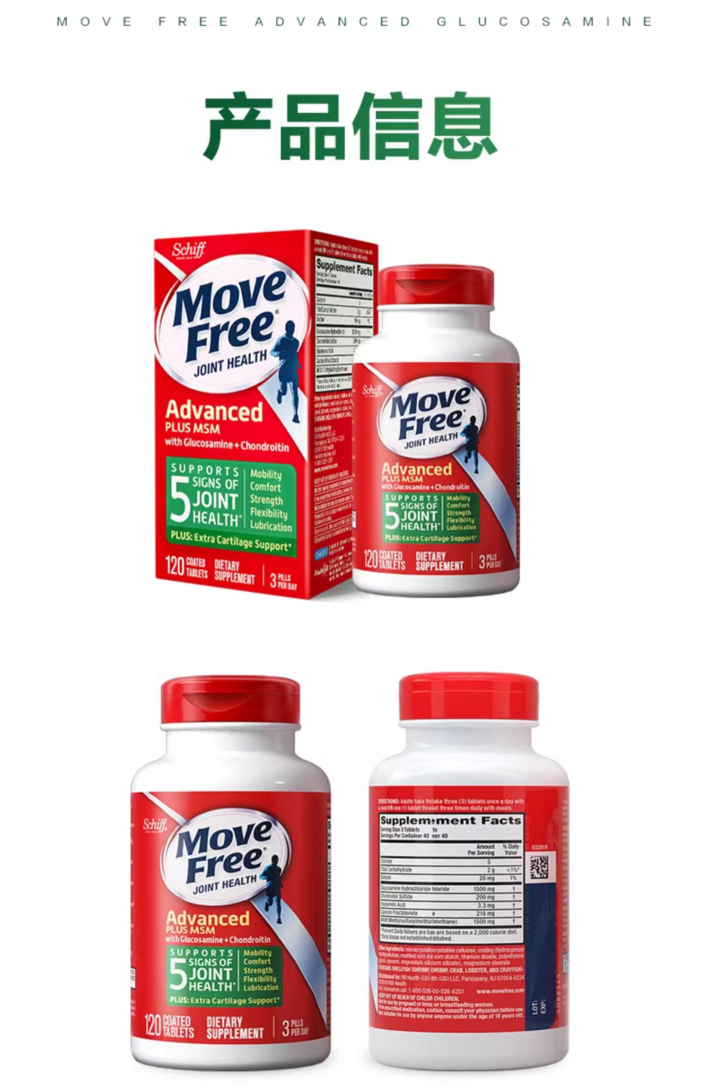 【原装进口】MoveFree美国进口益节氨糖软骨素维骨力关节绿瓶120粒/瓶