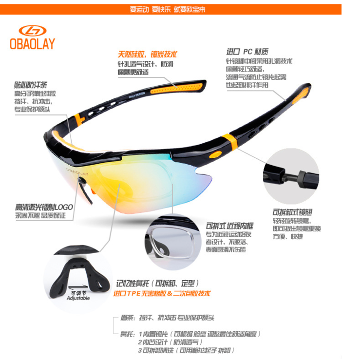 【5副镜片】OBAOLAY欧宝来100%防紫外线偏光骑行徒步登山跑步眼镜SP0890
