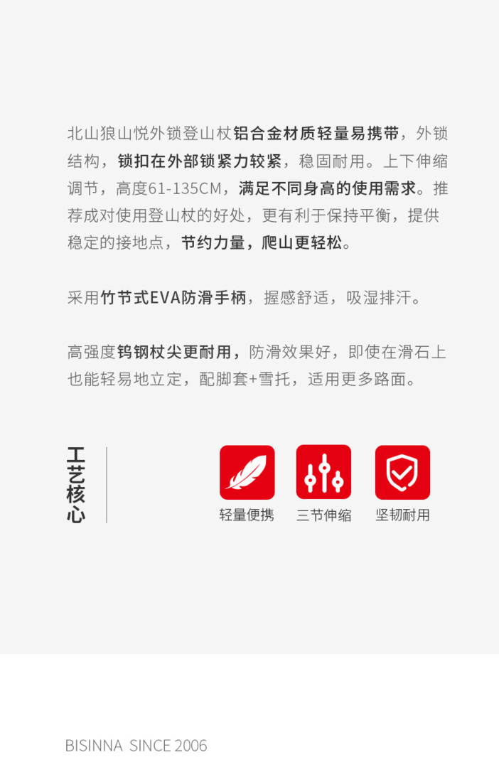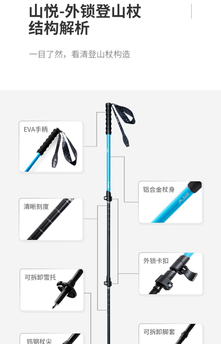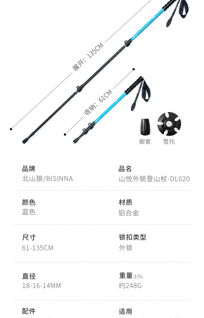 北山狼户外登山杖超轻外锁可伸缩手杖徒步登山徒步装备爬山拐杖DL020