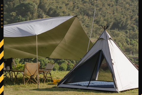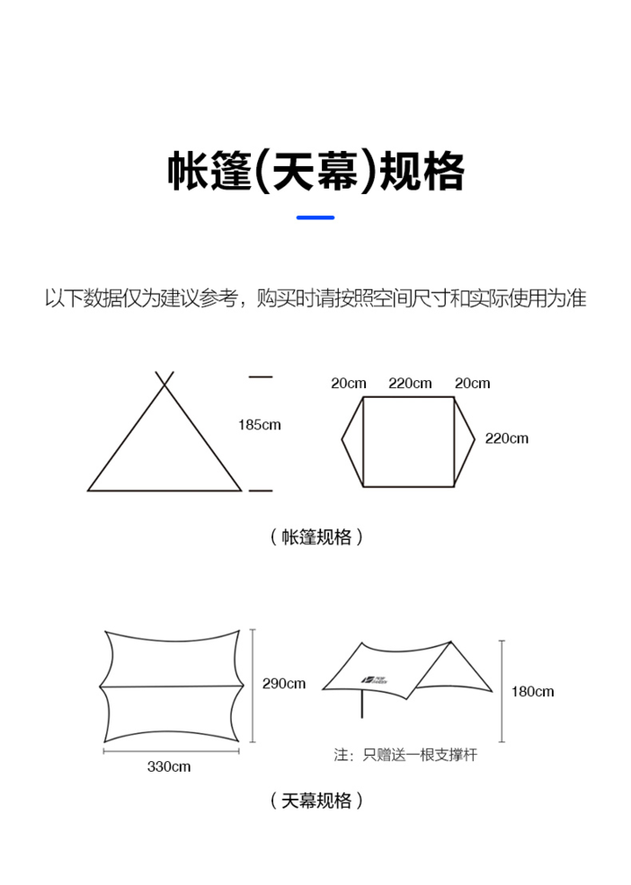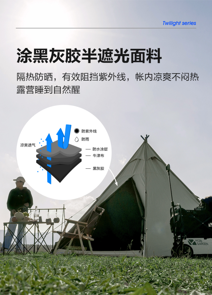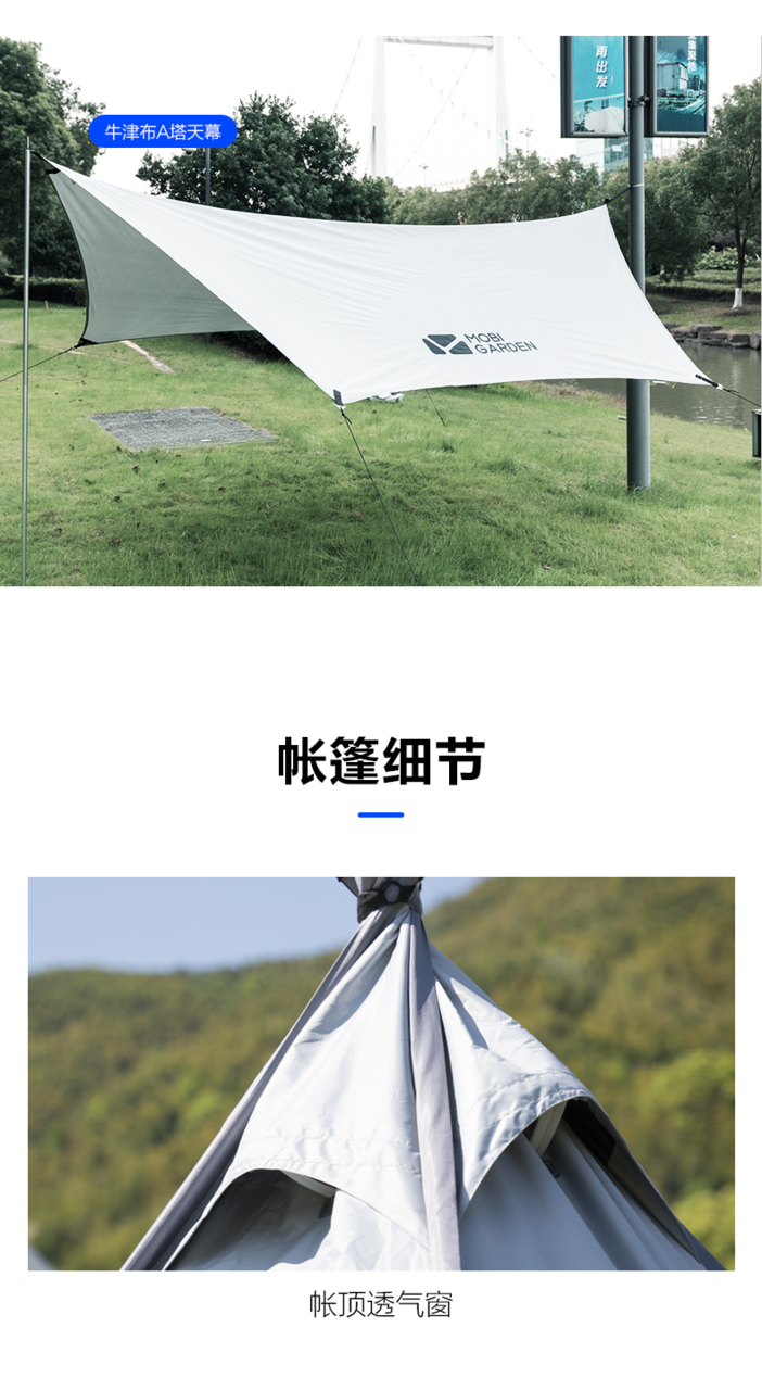 【超值组合】MOBIGARDEN牧高笛户外露营休闲山居黑胶防晒防雨金字塔帐篷天幕组合NX205610