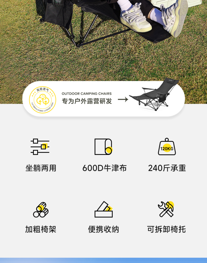 【限时大促】山扉SunnyFeel户外折叠躺椅便携可调节午休床沙滩椅野餐露营椅子