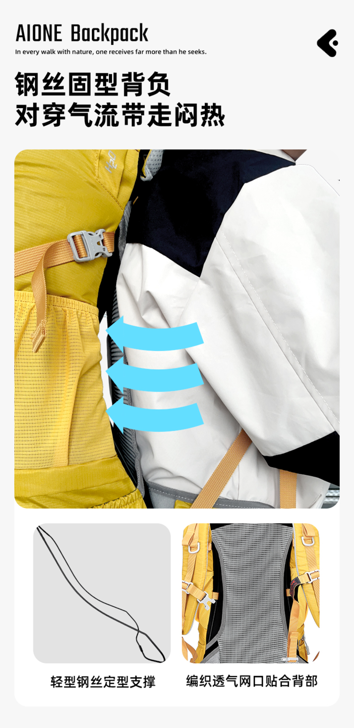 【限时大促】AIONE艾王0.85KG钢丝悬浮透气背负款轻量化徒步30L登山背包1869A