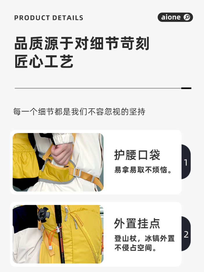 AI ONE艾王 30L透气背负舒适大容量合理装载户外背包