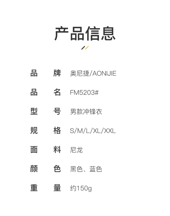 【限时大促】奥尼捷男女款越野跑轻薄防风防雨透气连帽冲锋衣FM5203/FW6203