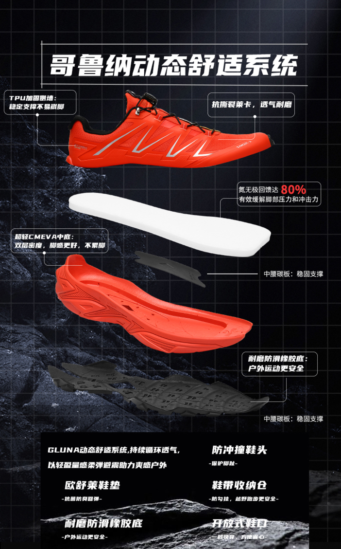 【赠奥尼捷背包】GLUNA哥鲁纳男女款户外越野跑鞋跑山鞋轻便防滑耐磨登山徒步鞋82829