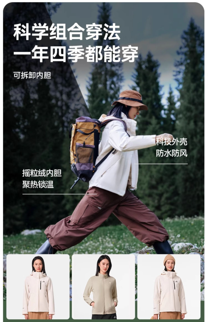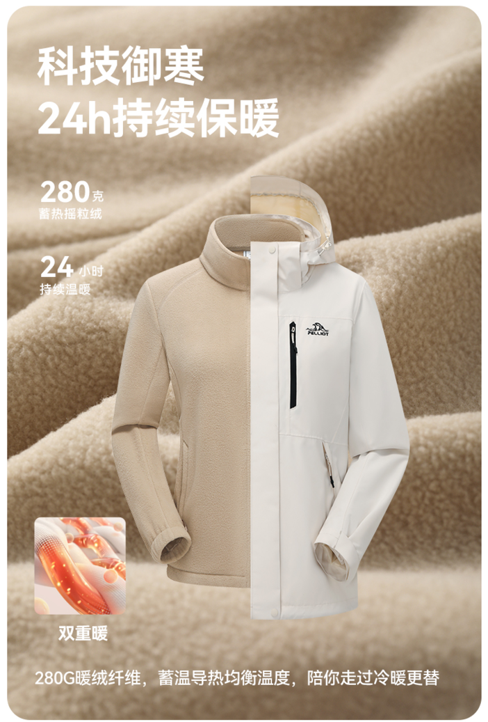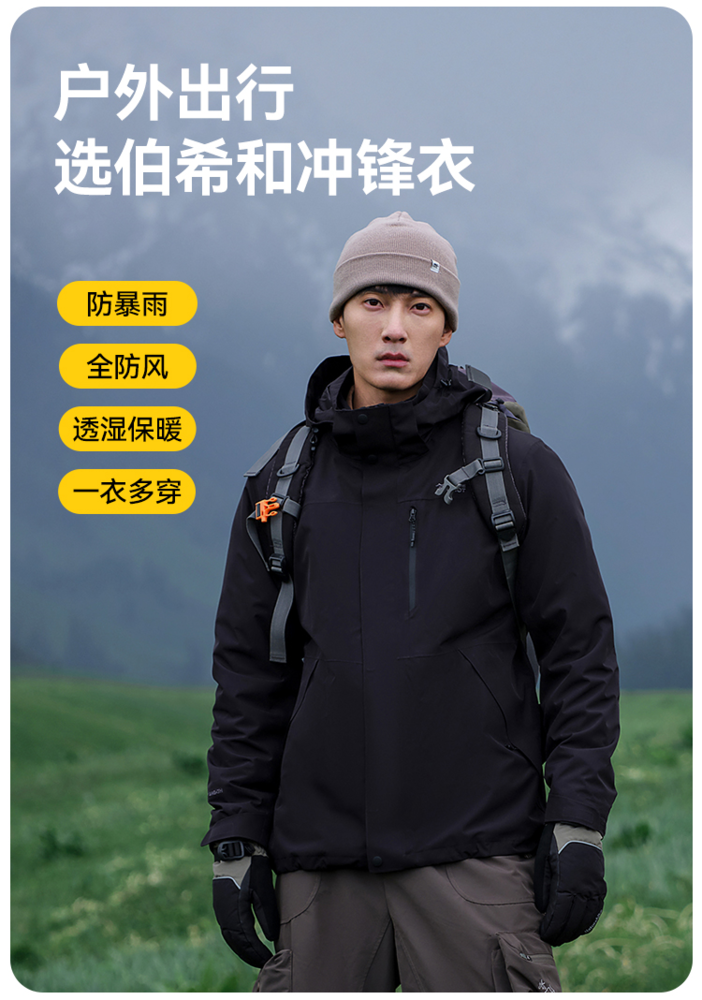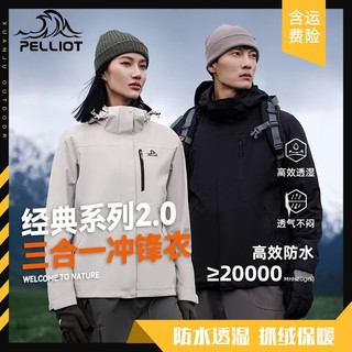 伯希和经典山野2.0/防水20000 伯希和男女款经典2.0三合一防风防水徒步登山抓绒冲锋衣