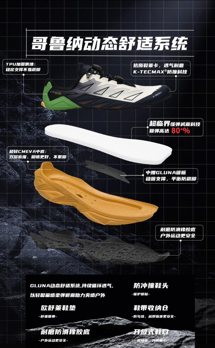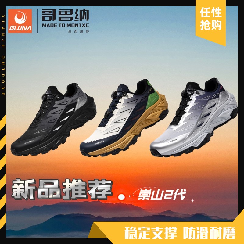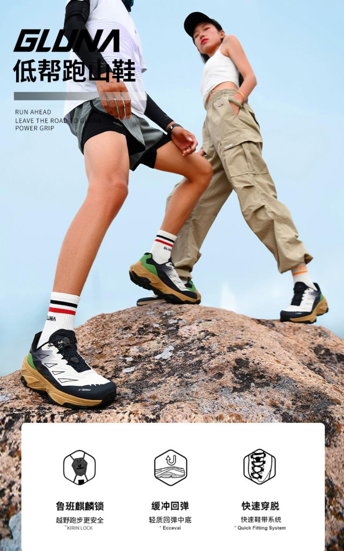 GLUNA哥鲁纳男女款崇山2代防滑耐磨防水透气超临界越野鞋跑山鞋子89569