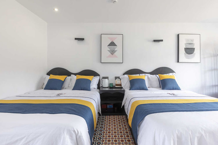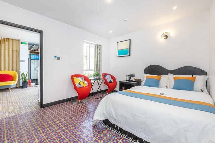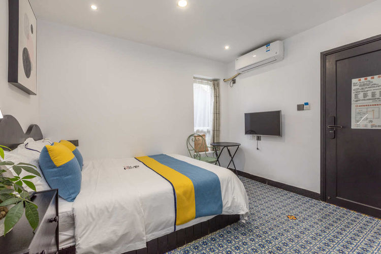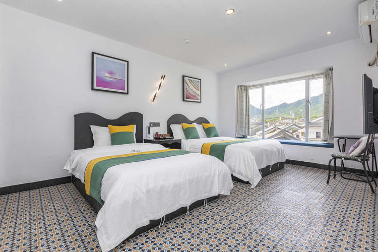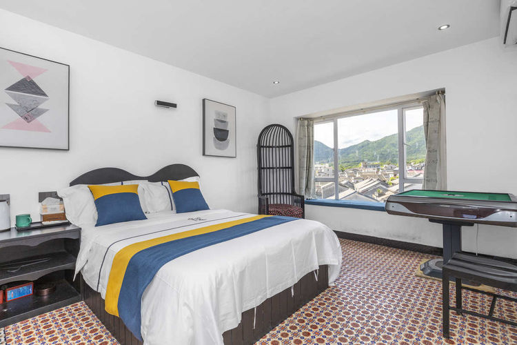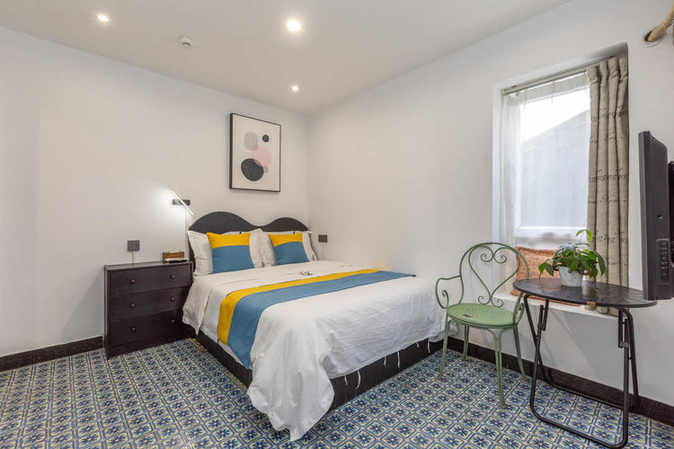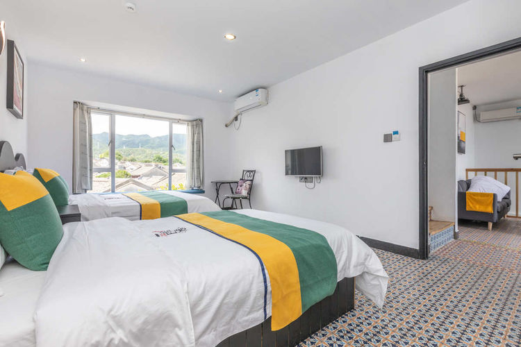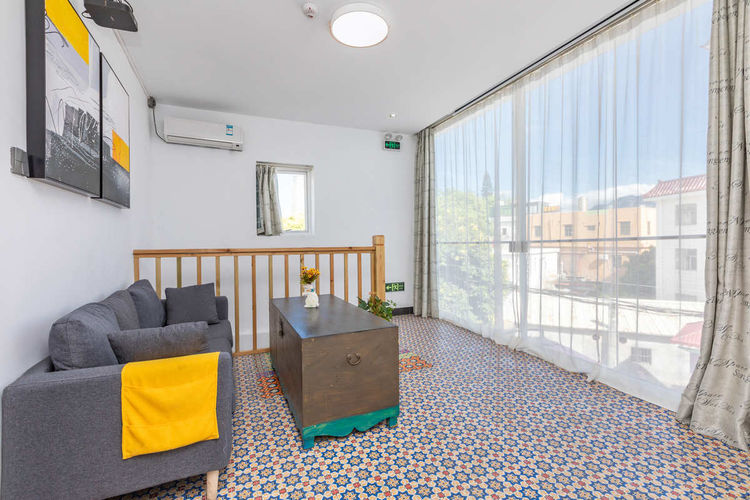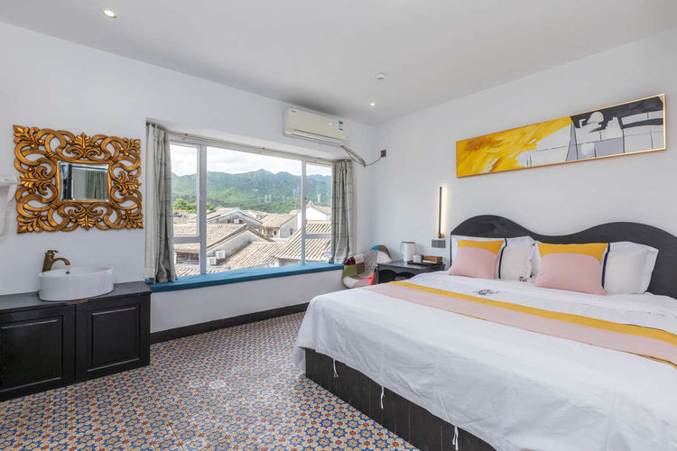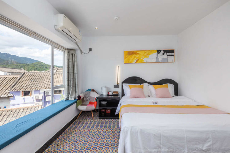 二楼 201 房,背靠古城,带有大飘窗,情侣入住为宜。