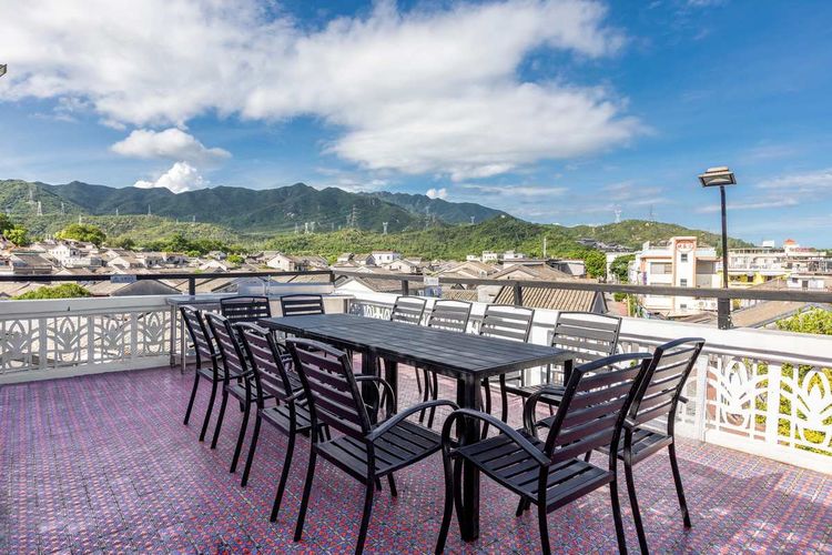 三楼天台,白天可以俯瞰大鹏所城全景,晚上可以坐下来聊聊聚聚,当然得配上啤酒和烧烤咯。