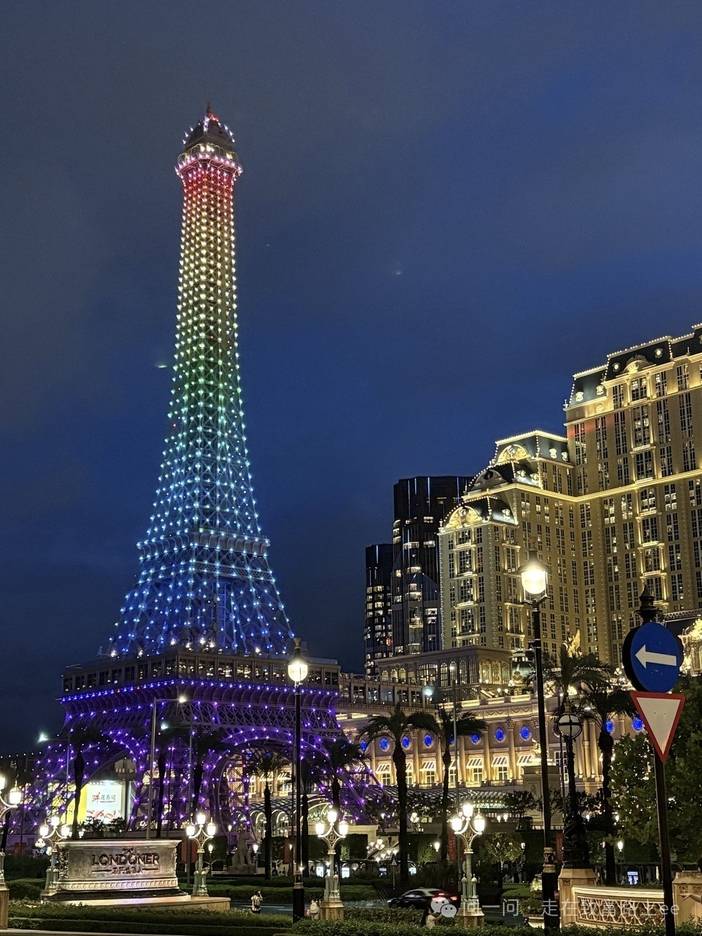 巴黎铁塔依照埃菲尔铁塔 1/2 比例建造,并设有超过 6,600 只绚丽闪亮的景光灯,为您呈现浪漫璀璨的光影艺术, 闪耀澳门夜空