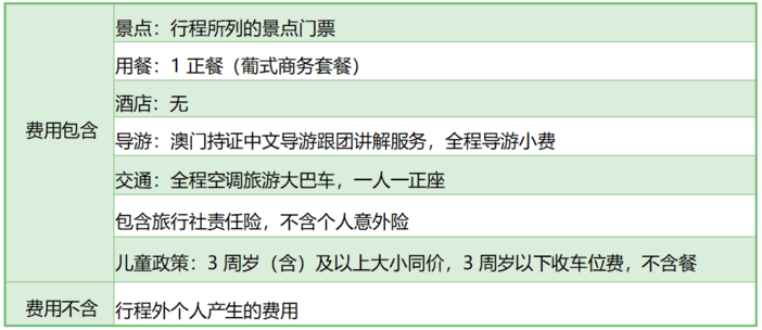 3、餐饮说明:*旅游团队用餐 ,旅行社按承诺标准确保餐饮卫生及餐食数量 ,但不同地区餐食口味有差异 ,不一定满足您的口味需求 ,敬请谅解。 *因港澳特殊习俗 , 中式围餐默认 10-12 人一桌 ,如人数超出或低于此范围菜品会相应增减。