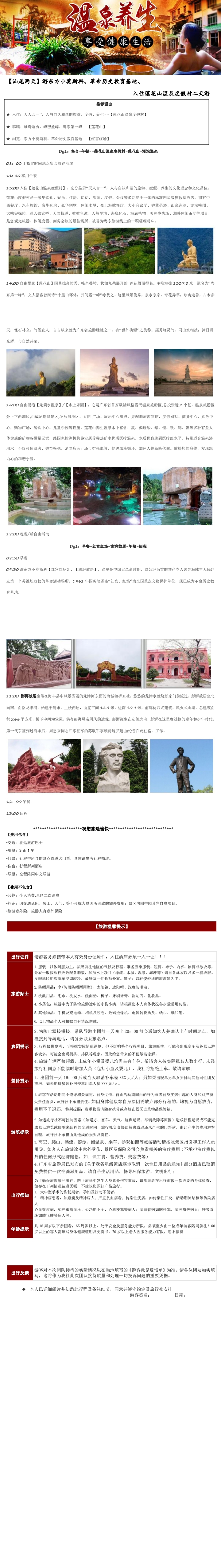 汕尾两天】游东方小莫斯科、革命历史教育基地、 入住莲花山温泉度假村二天游 [复制链接]