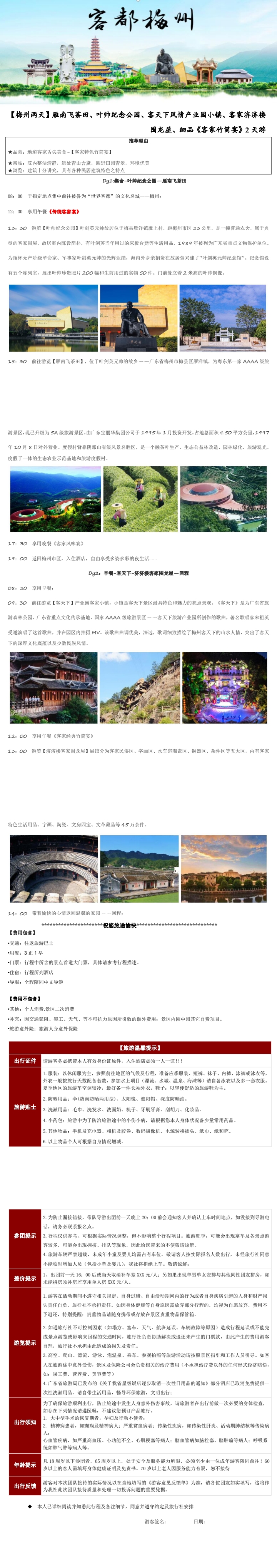 【梅州两天】雁南飞茶田、叶帅纪念公园、客天下风情产业园小镇、客家济济楼 围龙屋、细品《客家竹简宴》2 天游 [复制链接]