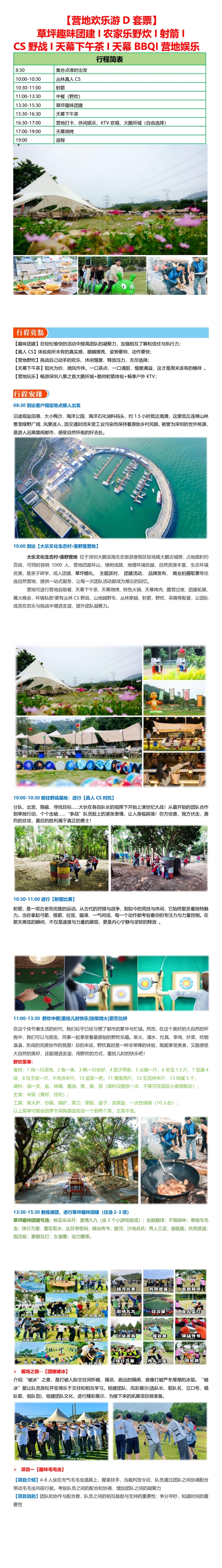 【营地欢乐游 D 套票】 草坪趣味团建 I 农家乐野炊 I 射箭 I CS 野战 I 天幕下午茶 I 天幕 BBQI 营 [复制链接]
