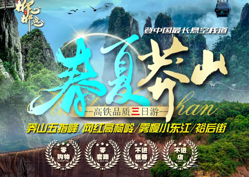 10:00自由到达景区东门口,坐景区接驳车,然后换乘缆车上山(没有其他交通工具,缆车费用自理);南中国最长悬空栈道:乘坐中国目前最长索道单线的观光缆车【五指峰索道】索道全长3.7公里,全国单线最长;每小时客运量达2000人,全国功率最大;全球索道极限高差,达1000米,创造了全国乃至全球索道领域的多项第一,堪称“世界一流、中国第一”五指峰索道。