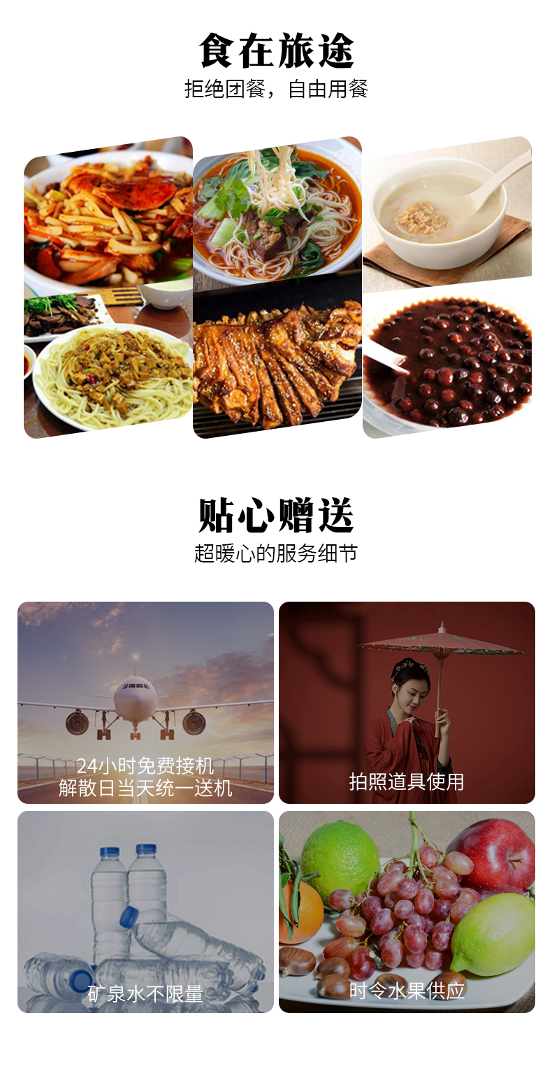 11、行程中的赠送项目,如因交通、天气等不可抗因素导致不能赠送的、或因您个人原因不能参观的,费用不退,敬请谅解。