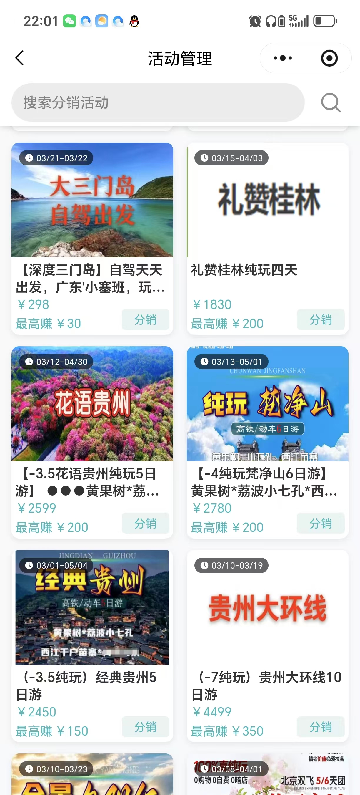 我的---我的分销——活动管理——每个活动都有设置佣金。