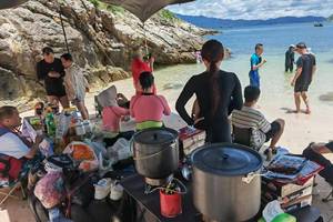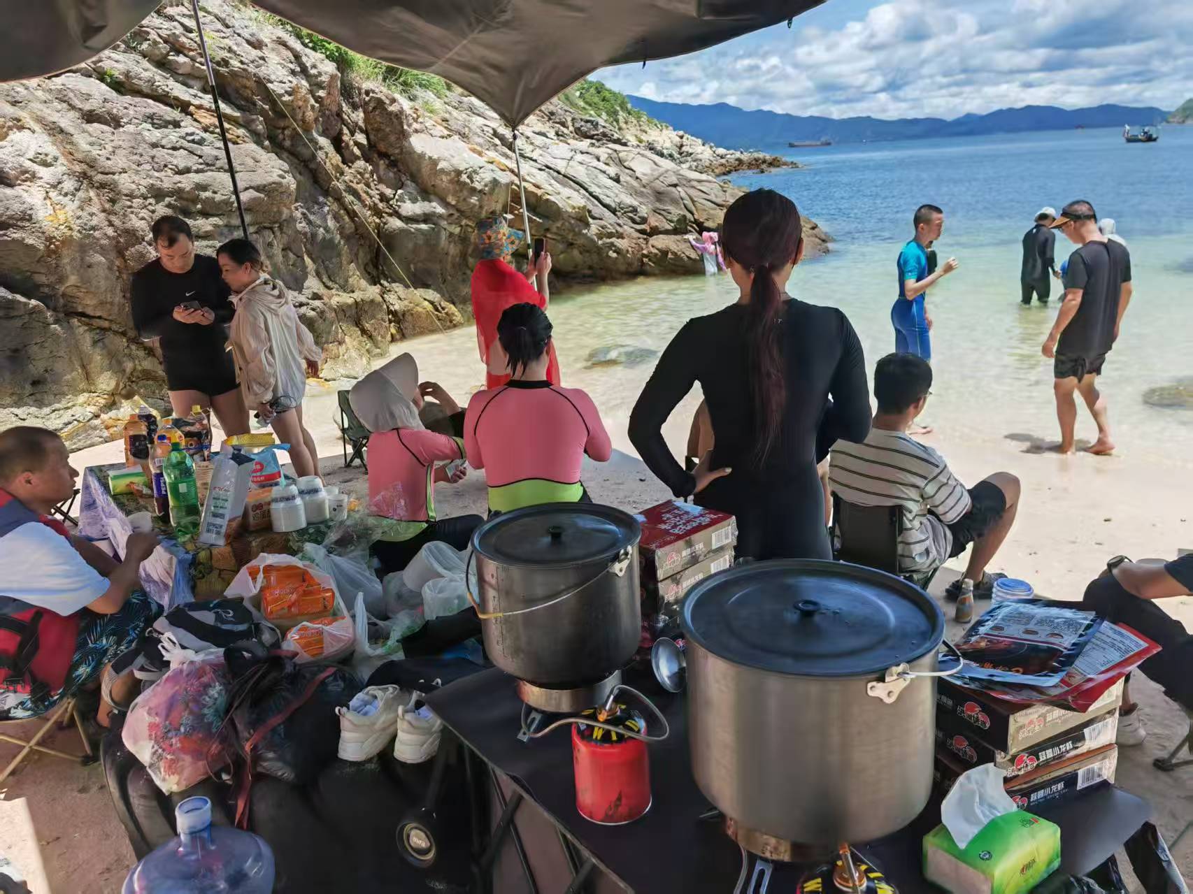 包含:快艇接送、海上运动保险、现煮午餐、零食水果饮料饮用水、赶海抓的海鲜下午再煮一顿、以及公共装备